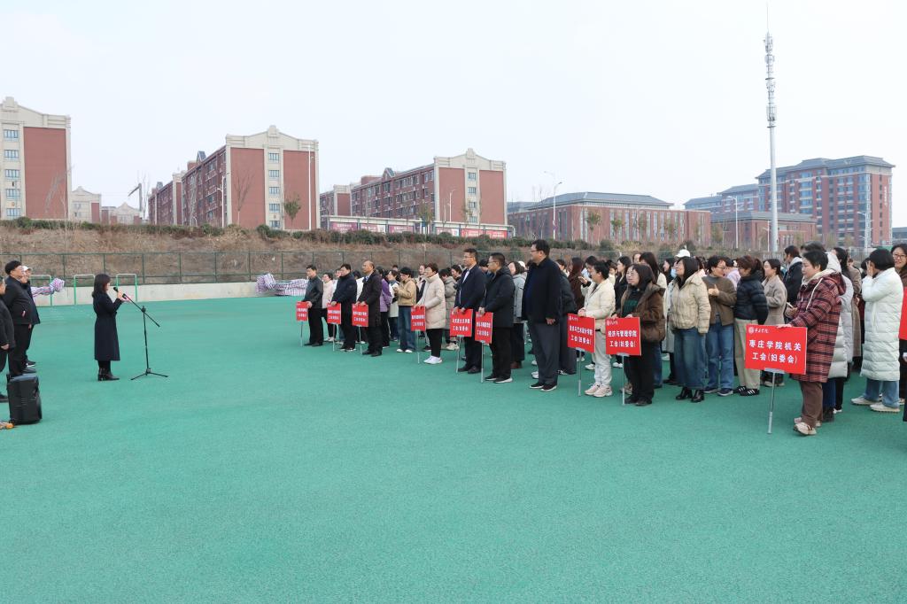 春和景明,万物生发。3月4日、3月6日,我校分别在市中校区和薛城校区举办第四届“三八”国际妇女节趣味运动会。校党委委员、副校长李存杰出席开幕式并讲话。校工会、妇委会、体育学院主要负责人参加开幕式,各分工会主席、妇委会主任带队参赛,全校共400余名女教职工参加活动。
