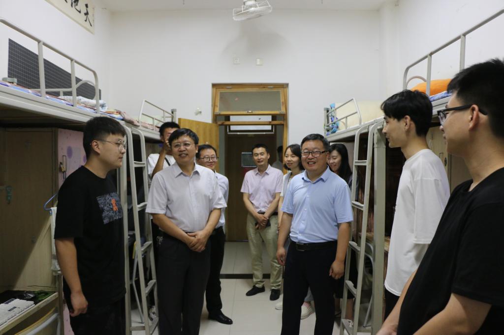 6月23日下午,在2021届毕业生即将毕业离校之际,校领导曹胜强、李文喜、李目海、路绪剑、丰雷、安涛、孙正、张昌林、林勇在校办公室、学生工作处、团委、后勤服务处、保卫处等部门有关人员陪同下,分三组深入毕业生宿舍,代表学校看望慰问毕业班学生,表达学校对毕业生的深切关怀和美好祝愿。