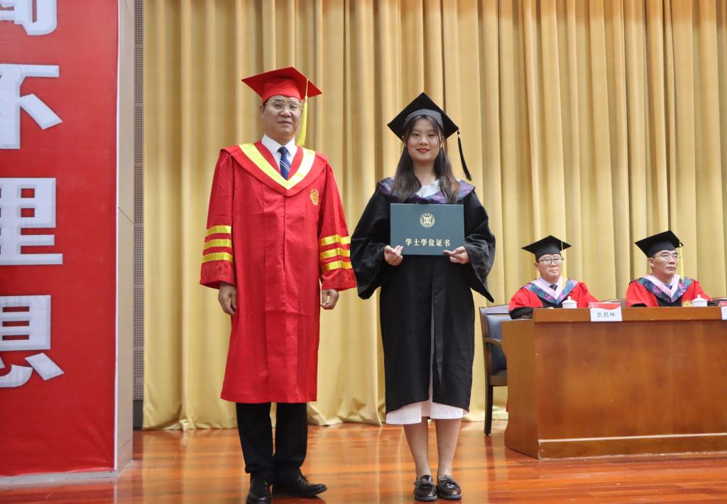 奋斗路正长,行者方致远。在毕业生即将踏上人生新征程之际,李文喜代表学校送上三点嘱托和祝福:第一,期待同学们涵养家国情怀,勇担时代使命。热爱祖国、报效祖国同样是每个枣院人的心之所系、情之所归。希望同学们在今后的人生旅程中,能够始终胸怀“国之大者”,始终把自身的“小我”,融入到祖国的“大我”、人民的“大我”之中,让青春在磨砺中出彩、在奋斗中升华,为新时代党和国家事业发展贡献智慧和青春力量。第二,期待同学们勤于修身养德,锤炼过硬本领。完善人格、涵养道德是我们一生必须追寻的目标。同学们唯有保持积极的人生态度,培养良好的道德情操,持续不断地努力学习,才能练就自我发展的强大“内核”、构造自身“硬件系统”,成为新时代国家和民族可信赖、可依靠的“硬核”青年。第三,期待同学们永葆创新精神,争做开路先锋。创新是社会发展的第一动力和永恒主题,也将是同学们建功立业的根本途径。希望同学们今后无论是继续深造还是投身工作,都能始终褒有“敢为天下先”的锐气和甘坐“冷板凳”的定力,把激昂的创新创业梦融入伟大的中国梦,勇攀科技高峰,勇闯科技创新“无人区”,争做创新报国的引领者和实干家。