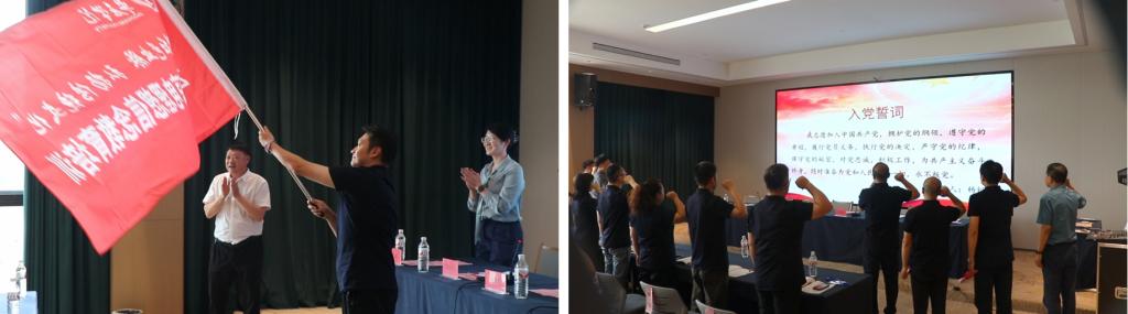仪式上,王在明为培训班授旗。全体学员面向党旗重温入党誓词,铿锵誓言回荡在铁道游击队的故乡。