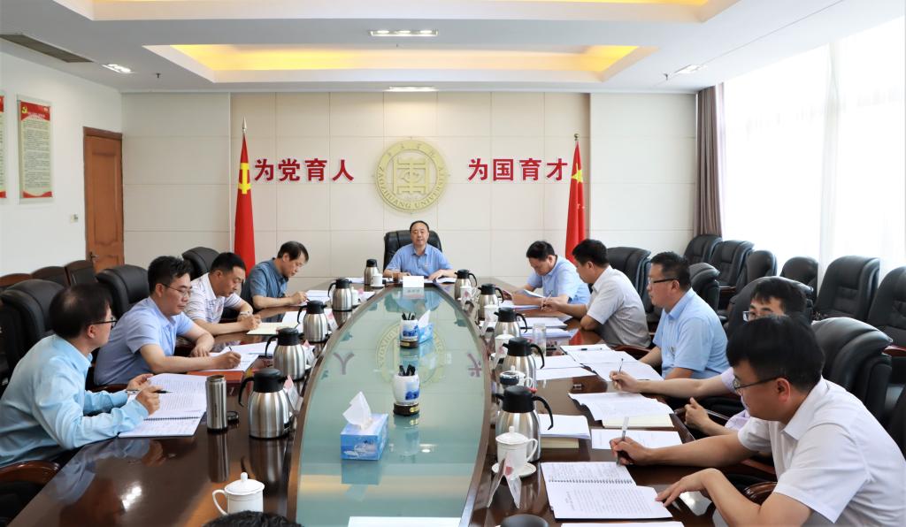 6月7日上午,我校在综合楼八楼会议室召开党史学习教育领导小组第三次会议,校党委书记、校党史学习教育领导小组组长曹胜强主持会议并讲话,党史学习教育领导小组成员参加会议。