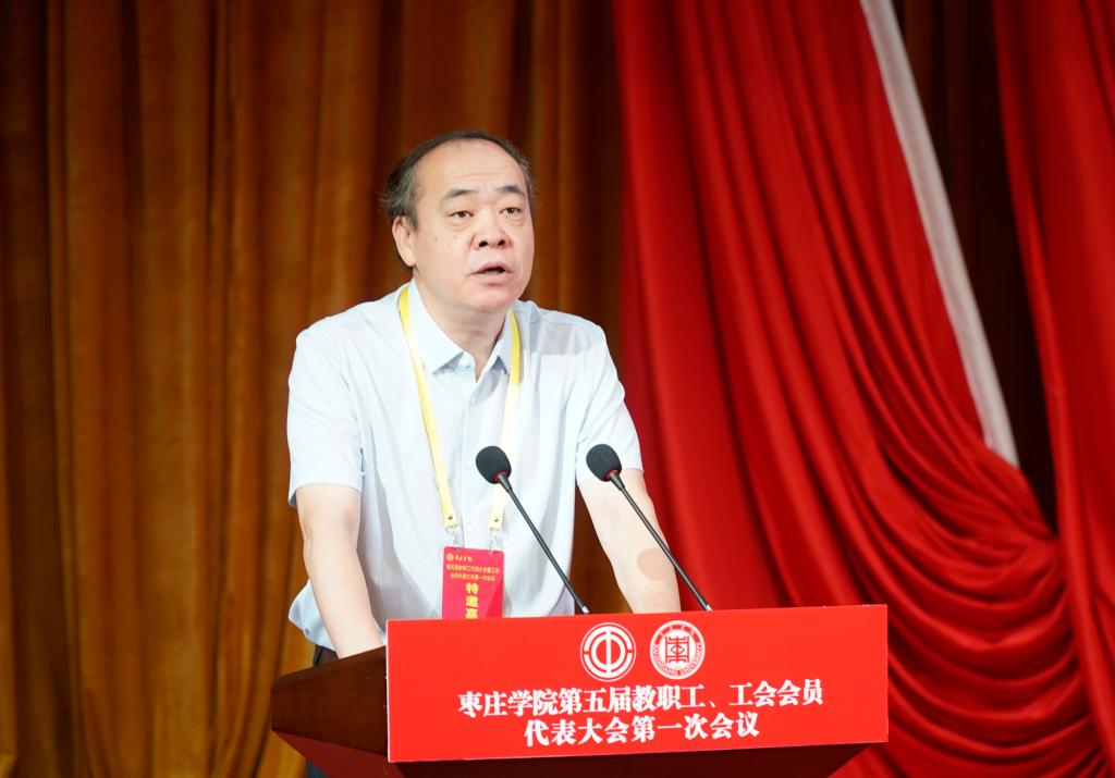 韩惊涛在致辞中代表枣庄市总工会向大会的胜利召开表示热烈祝贺,指出香港全年最全免费资料大全工会坚持围绕中心、服务大局,在维护教职工权益、丰富教职工生活、促进民主管理等方面做了大量卓有成效的工作。希望下一步继续强化政治引领、聚焦中心大局、坚持以人为本、深化改革创新,进一步提升教职工的获得感、幸福感,增强工会组织的生机活力。