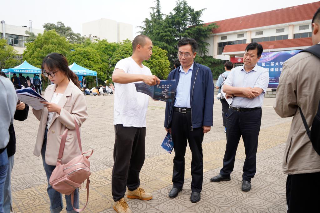 为深入开展“我为群众办实事”实践活动,帮助广大毕业生深入正确了解自我,理性定位求职目标,促进他们科学就业、理性就业。我校在五四青年广场举办第二届大学生生涯体验周活动,为同学们提供全面、直观的体验式就业创业指导教育。本次生涯体验周从5月19日开始,为期3天,校党委书记曹胜强,校党委副书记、校长李文喜,校党委委员、副校长安涛先后莅临活动现场指导,仔细询问活动内容和参与方式,并体验活动环节。