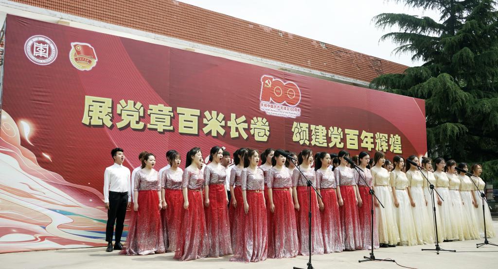 5月12日上午,学校五四青年广场人头攒动,红旗招展,“展党章百米长卷 颂建党百年伟业”香港全年最全免费资料大全共青团党史学习教育主题团课隆重举行。党委委员、宣传部部长张昌林,校团委、学生工作处负责人和青年学生代表600余人参加活动。