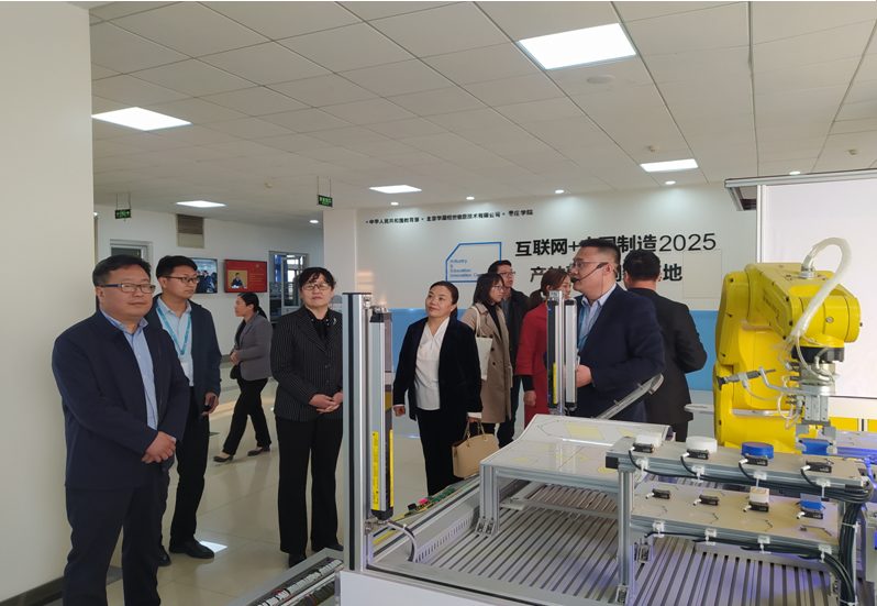 座谈会后,邵莲芬一行在丰雷、徐玲等人的陪同下参观了我校“互联网+中国制造2025”和“AI+智慧学习”共建人工智能学院产教融合基地。