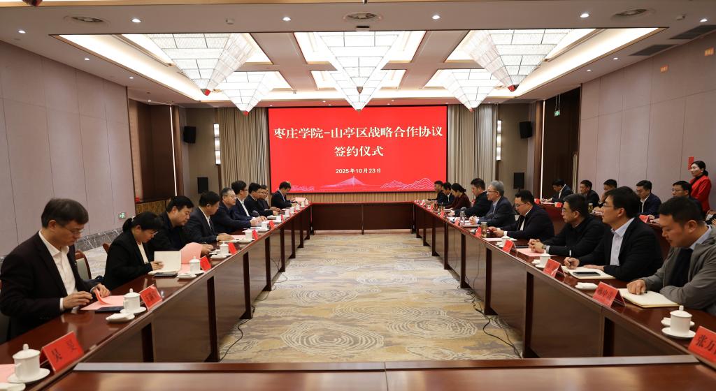 10月23日,我校与山亭区战略合作签约仪式在山亭宾馆举行。校党委书记高峰,党委副书记、校长丛海林,党委委员、副校长李目海,山亭区委书记王德海,山亭区委副书记、区长刘洪鹏出席并主持会议。