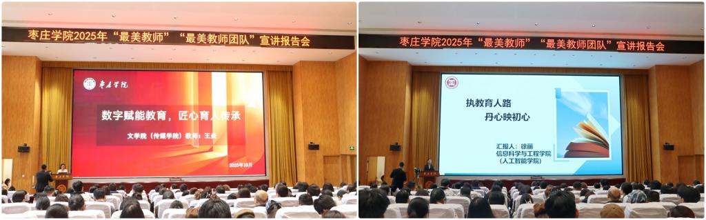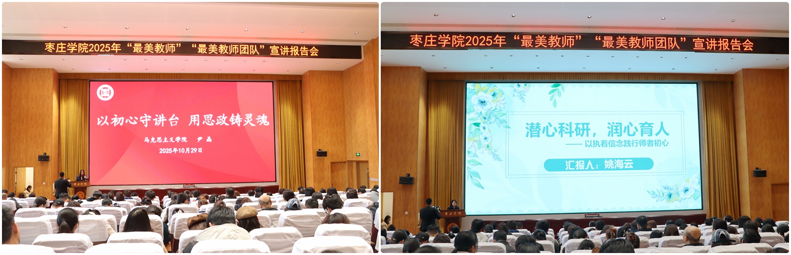 为弘扬高尚师德,展现我校教师潜心育人、爱岗敬业的精神风貌,汇聚立德树人的磅礴力量,10月29日下午,我校在崇德楼报告厅举办2025年“最美教师(团队)”薛城校区宣讲报告会。校党委副书记丰雷出席活动并讲话,宣传部副部长汪涛主持活动。