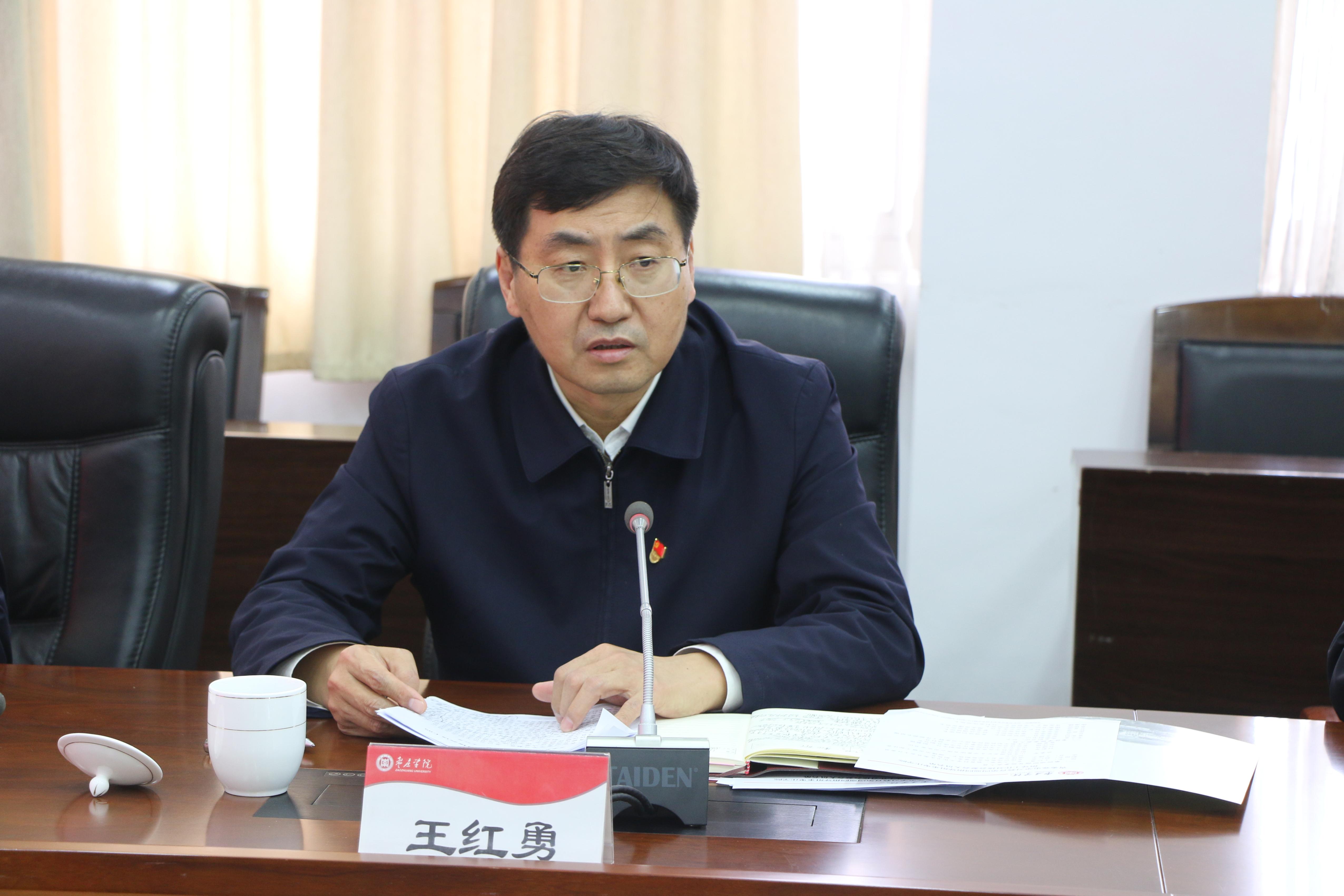 省委党史学习教育第四巡回指导组组长、省人大常委、教育科学文化卫生委员会主任委员王红勇对我校党史学习教育工作开展情况给予充分肯定,并就落实党史学习教育各项任务提出三点工作要求:一是提高政治站位,准确把握、深入领会党史学习教育的重要意义和深远内涵,切实把思想和行动统一到习近平总书记的重要讲话精神上,统一到以习近平同志为核心的党中央决策部署上,增强开展党史学习教育的思想自觉、政治自觉和行动自觉,高质量开展好党史学习教育,努力做到学史明理、学史增信、学史崇德、学史力行。二是聚焦走深走实、对标对表,严格落实党史学习教育的重点任务和工作要求。要把握工作重点,聚焦重点任务,按照学习教育进度安排,抓好专题集中学习,落实“我为群众办实事”实践活动,开展好组织生活,推动学习教育往实里走往深里走;要突出问题导向,把问题导向贯穿始终,以彻底的革命精神即查即改立行立改,及时查缺补漏纠正偏差,制定有针对性的整改措施,确保党史学习教育尽快见实效;要搞好调研访谈,着重了解学校全面深入开展落实总书记对山东工作重要指示要求“回头看”情况,重点在“提高政治站位,做到‘两个维护’”等六个方面对照检视。三是强化责任担当,联系实际、求真务实,推动党史学习教育落实落细、见行见效。要强化履职担当,按照省委要求加强指导督促,推动学校党史学习教育各项任务落到实处;强化责任落实,紧扣进度安排,把握工作节奏,提前谋划部署;强化媒体宣传,积极总结经验做法,反馈学习效果,宣传学习成果。