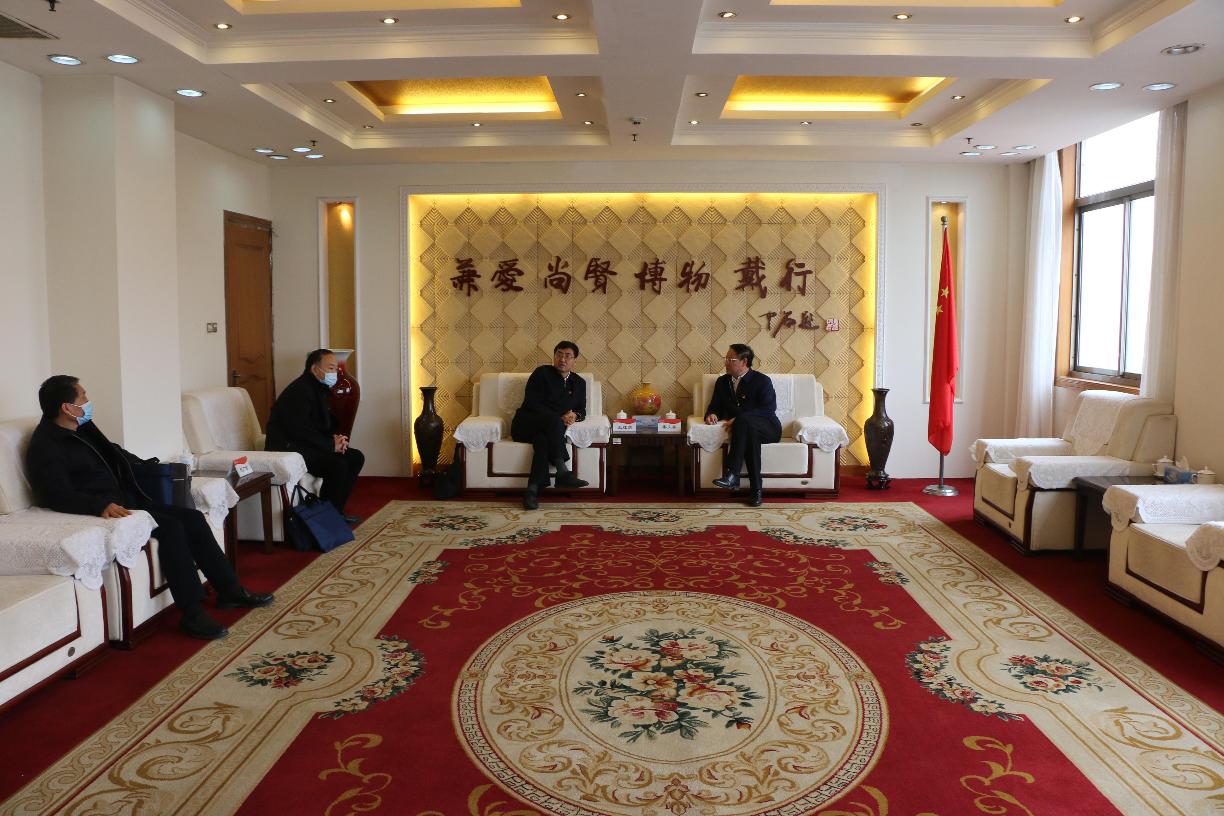 对接会开始前,王红勇与李文喜在综合楼八楼会议室进行了简短会谈。