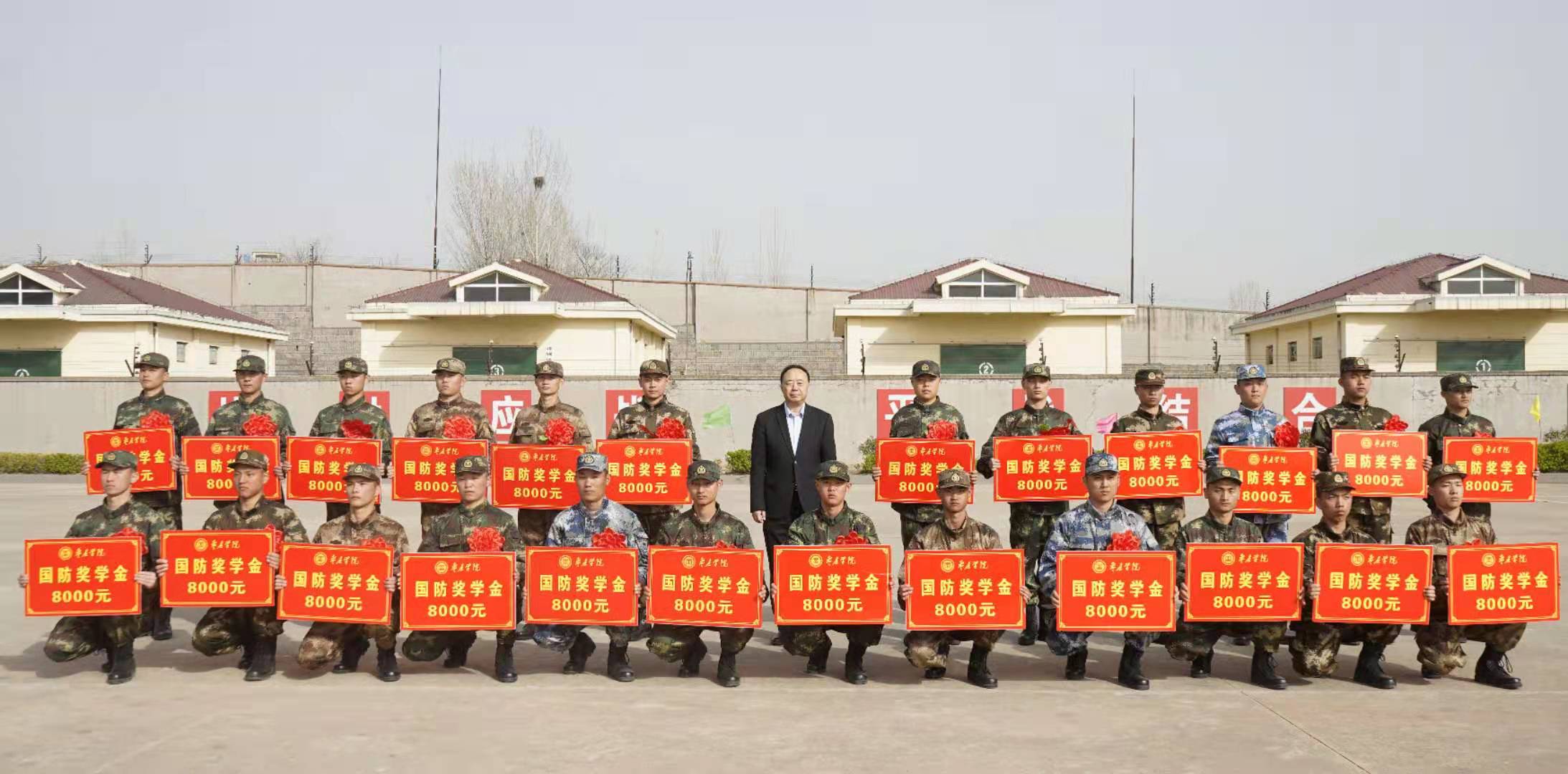 曹胜强仔细询问了同学们的近期训练生活情况,并逐一为同学们颁发国防奖学金。