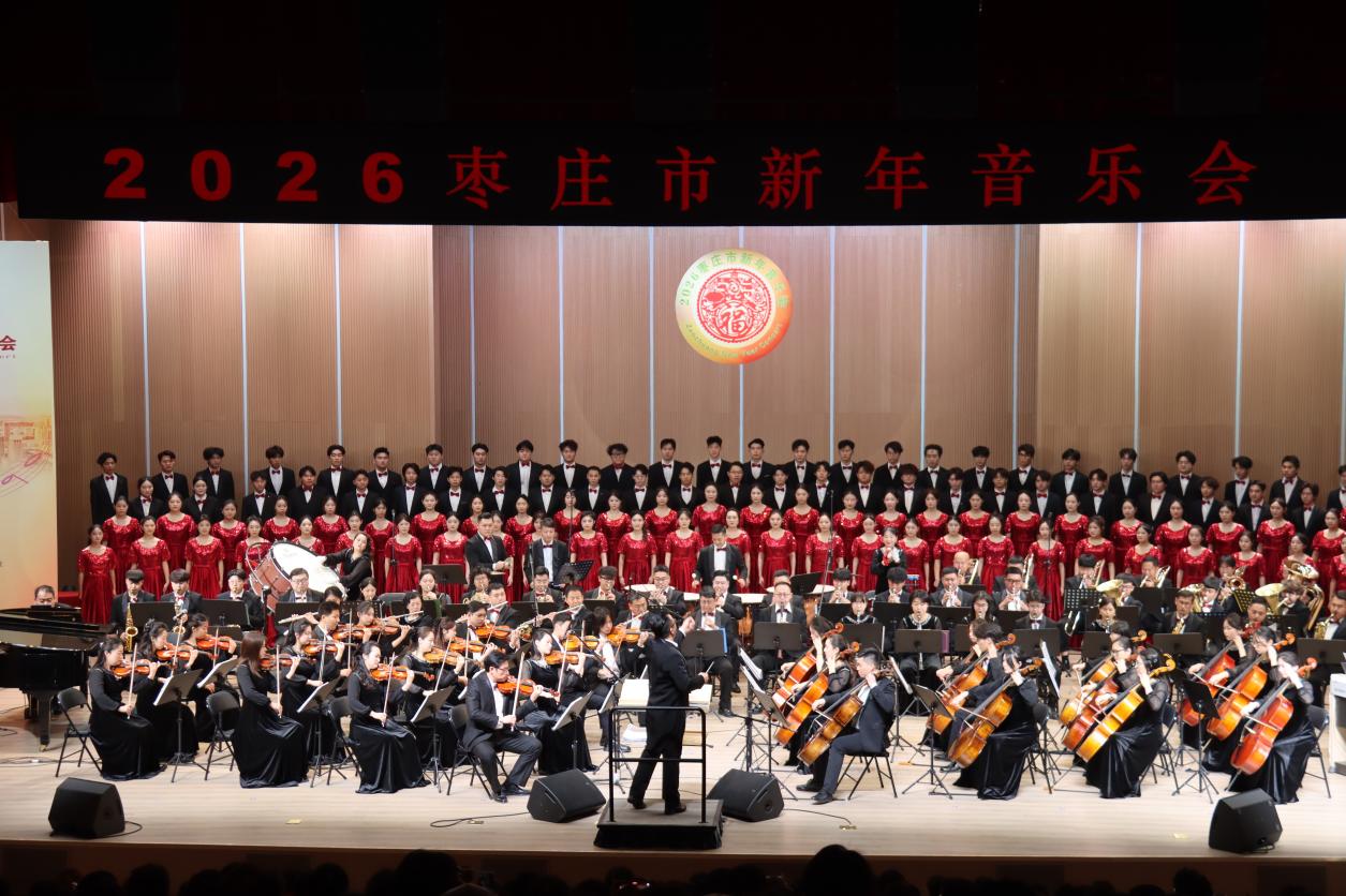 12月30日,2026枣庄市新年音乐会在我校青年音乐厅成功举办。山东省音乐家协会驻会副主席、秘书长武洪昌,市政协党组书记、主席张兵,市委常委、组织部部长李妍,校党委书记高峰,党委副书记、校长丛海林,市人大常委会副主任艾百灵,校党委副书记丰雷,校党委委员、副校长李目海、安涛,党委委员、纪委书记、监察专员武尚民,党委委员、副校长褚夫敏出席音乐会。