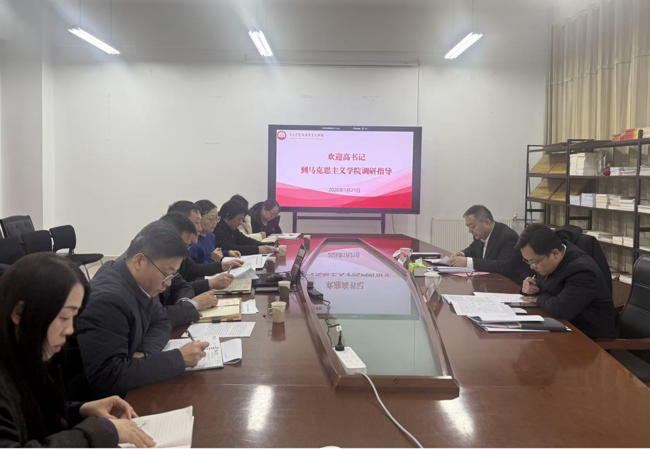 会前,高峰对马克思主义学院“十五五”规划、2026年重点工作、师资队伍提质扩容、意识形态安全问题、标志性成果产出问题等工作进行调研并给予工作指导。