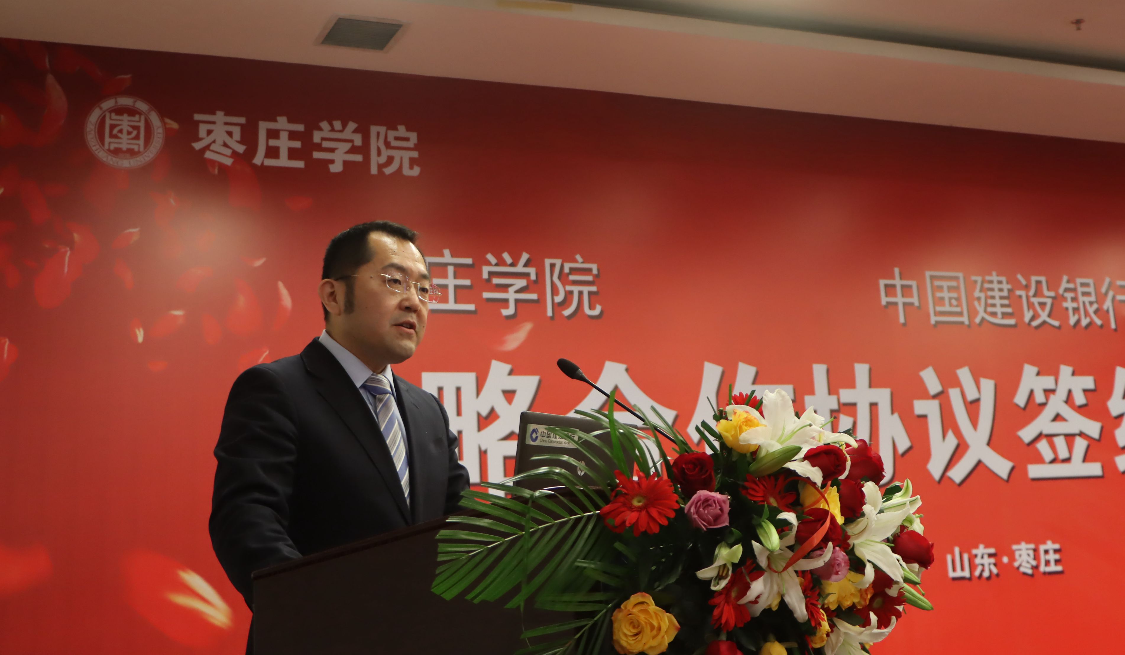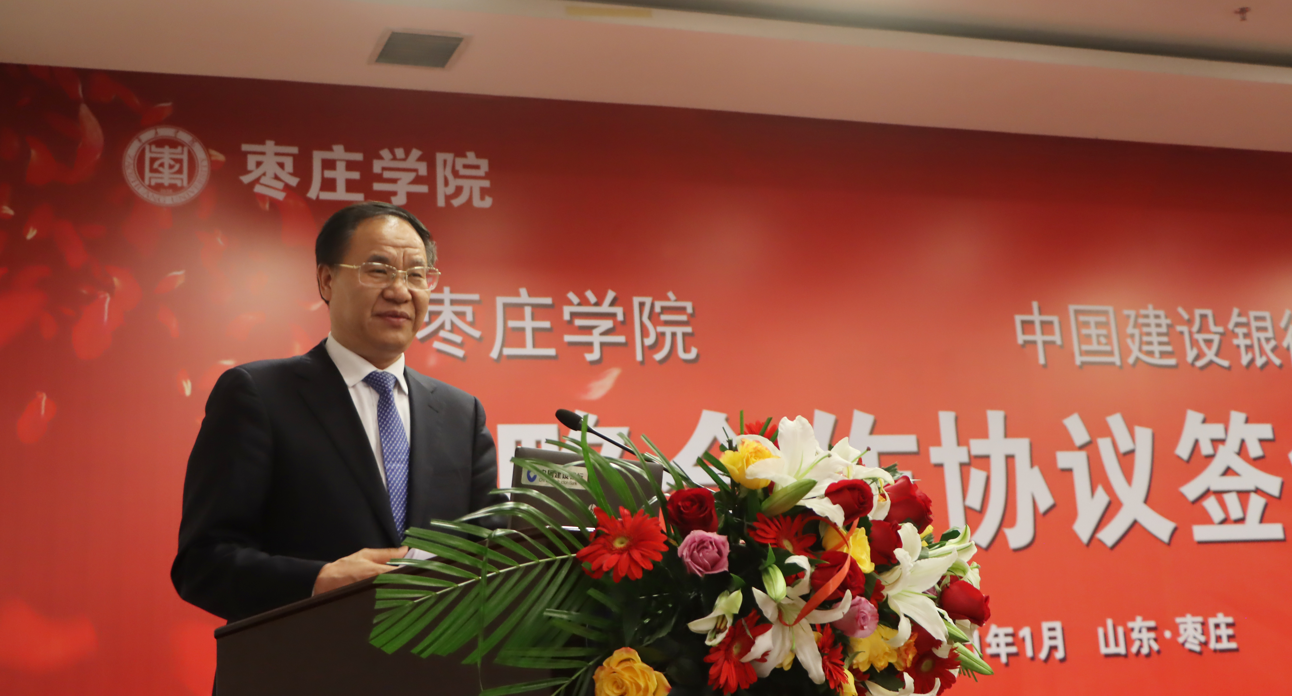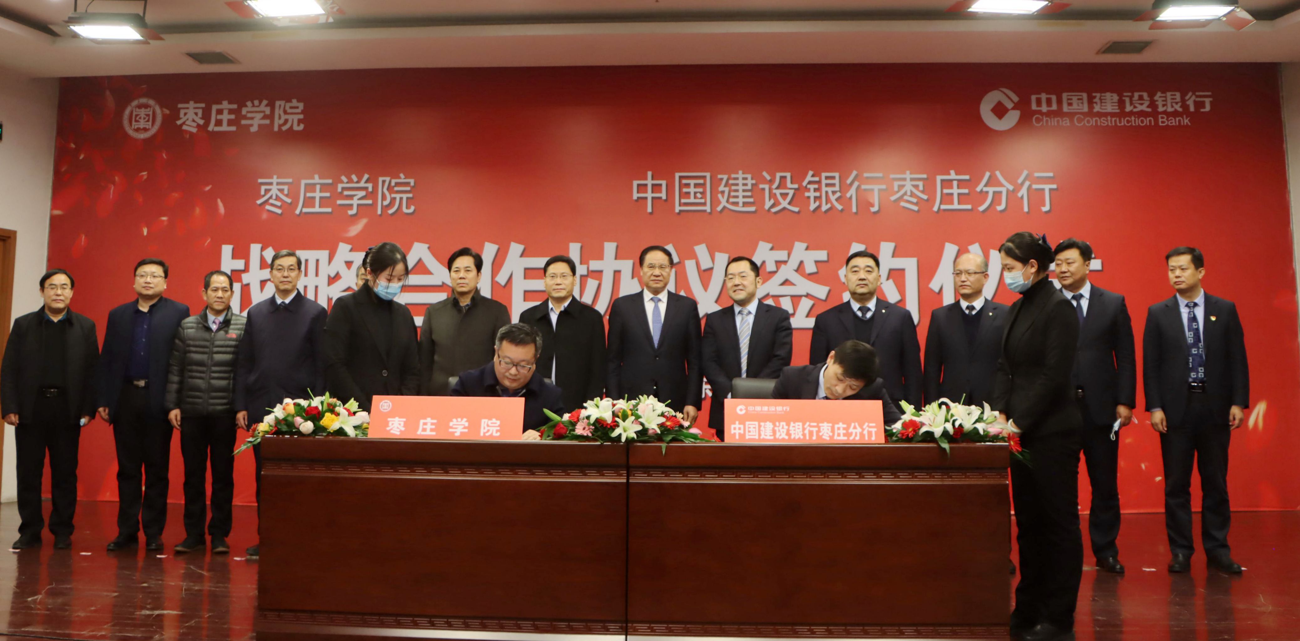 1月27日下午,我校与中国建设银行枣庄分行签署战略合作协议,签约仪式在该行三楼会议室举行。校党委副书记、校长李文喜,党委委员、副校长丰雷,中国建设银行枣庄分行党委书记、行长崔震,党委副书记、副行长孙中会出席仪式。校办公室、 政策法制处、学生工作处、计划财务处、后勤服务处、合作发展处、网络中心等部门负责人,中国建设银行枣庄分行党委委员、副行长张守义、陈勇,高级客户经理丛方忠,营业部主任李峰等部门负责人参加活动。仪式由张守义主持。