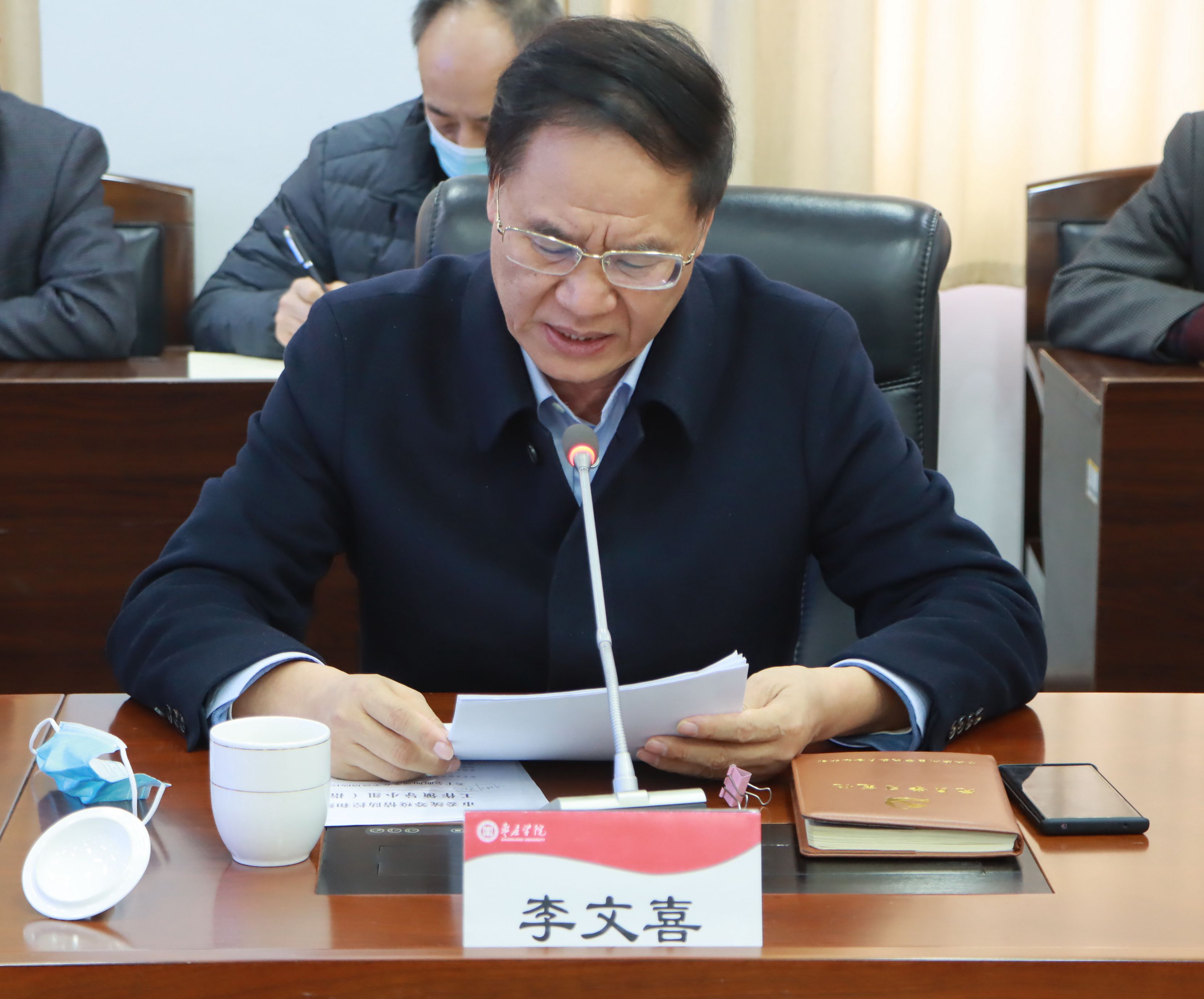 李文喜对做好寒假期间相关工作进行部署安排:一是慎终如始抓好疫情防控工作;二是精心谋划好学校“十四五”规划和2021年工作;三是全力做好人才引进工作;四是细致做好困难师生和留校学生的生活保障;五是切实做好校园安全工作。此外,李文喜还对省、市疫情防控通告进行了传达。