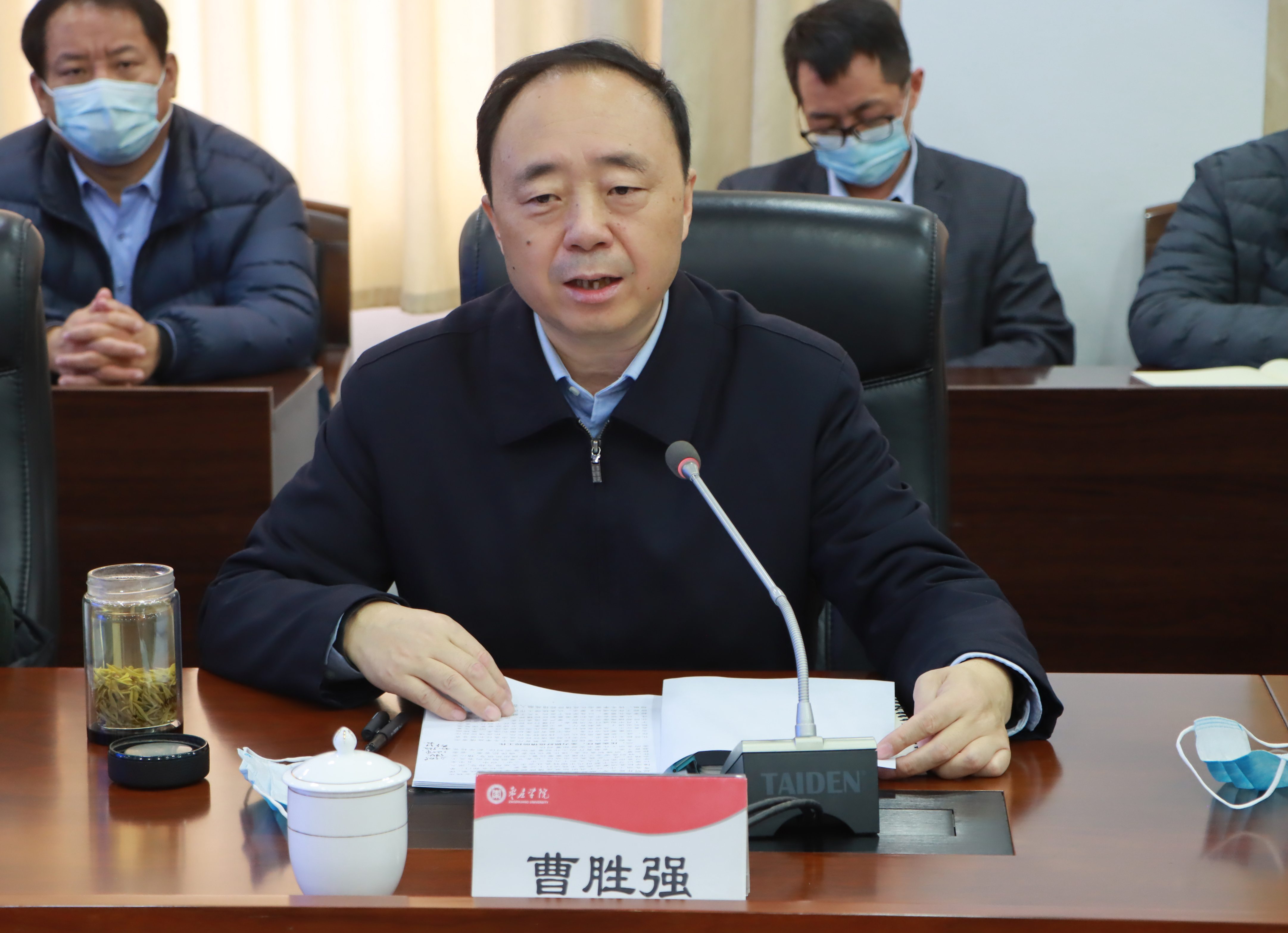 曹胜强对做好寒假各项工作提出三点要求:一要提高站位、强化组织领导。全校各部门、单位要以习近平新时代中国特色社会主义思想为指导,深入学习贯彻党的十九届五中全会精神,进一步提高政治站位,加强组织领导,精心安排部署,明确职责任务,强化督促检查。把省委、省委教育工委、省教育厅的工作部署贯彻落实到位,把学校党委的各项工作要求安排部署到位。做好疫情防控和安全稳定等各项工作。 二要压实责任,全力抓好疫情防控工作。要按照省委、省教育厅关于冬季疫情常态化防控工作要求,切实扛起疫情防控的政治责任和领导责任,把疫情防控作为一项重要政治任务,按照负责分工落细压实防控责任,将冬季常态化疫情防控措施融入各个工作环节,不断细化工作方案,确保疫情防控常态化走深走细走实,确保校园绝对安全稳定。三要统筹谋划,推动学校事业发展开启新征程。利用好假期的休息时间,加强理论学习,持续深入学习贯彻党的十九届五中全会精神,坚持用习近平新时代中国特色社会主义思想武装头脑、指导实践、推动工作,在学思践悟中提高政治本领。统筹做好疫情防控和寒假有关工作,统筹谋划好新一年学校的各项工作,要进一步增强大局意识和全局观念,坚决服从学校党委统一安排部署,做到令行禁止。