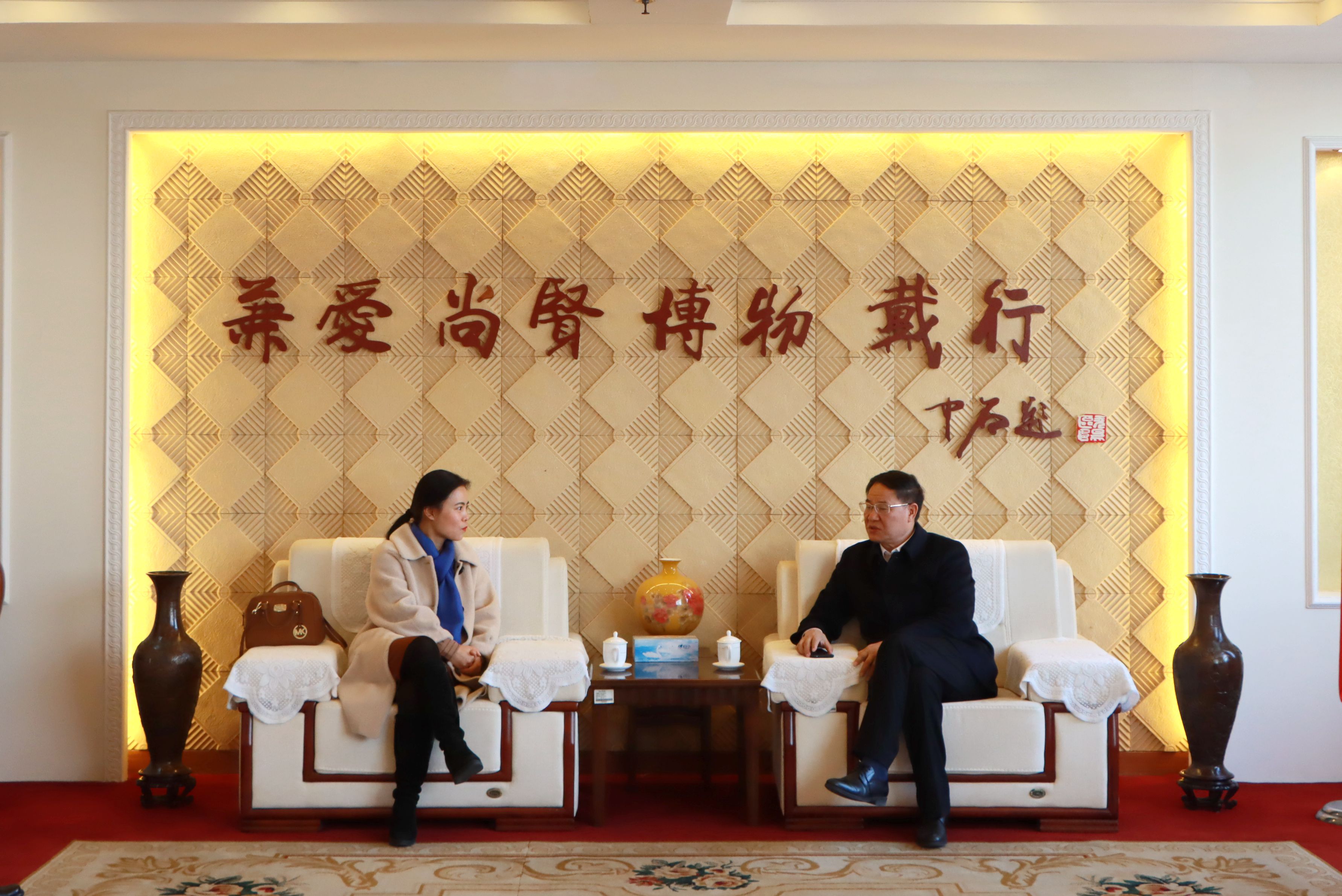 12月23日上午,教育部规建中心“中美产教融合+高水平应用高校建设”项目(原中美应用技术教育“双百计划”)唯一执行公司、北京金蓝无忧国际教育科技有限公司董事长郭雅琴,院校合作部总经理李广雨来校考察交流。校长李文喜、副校长明清河在综合楼八楼接待室热情接待了郭雅琴一行。