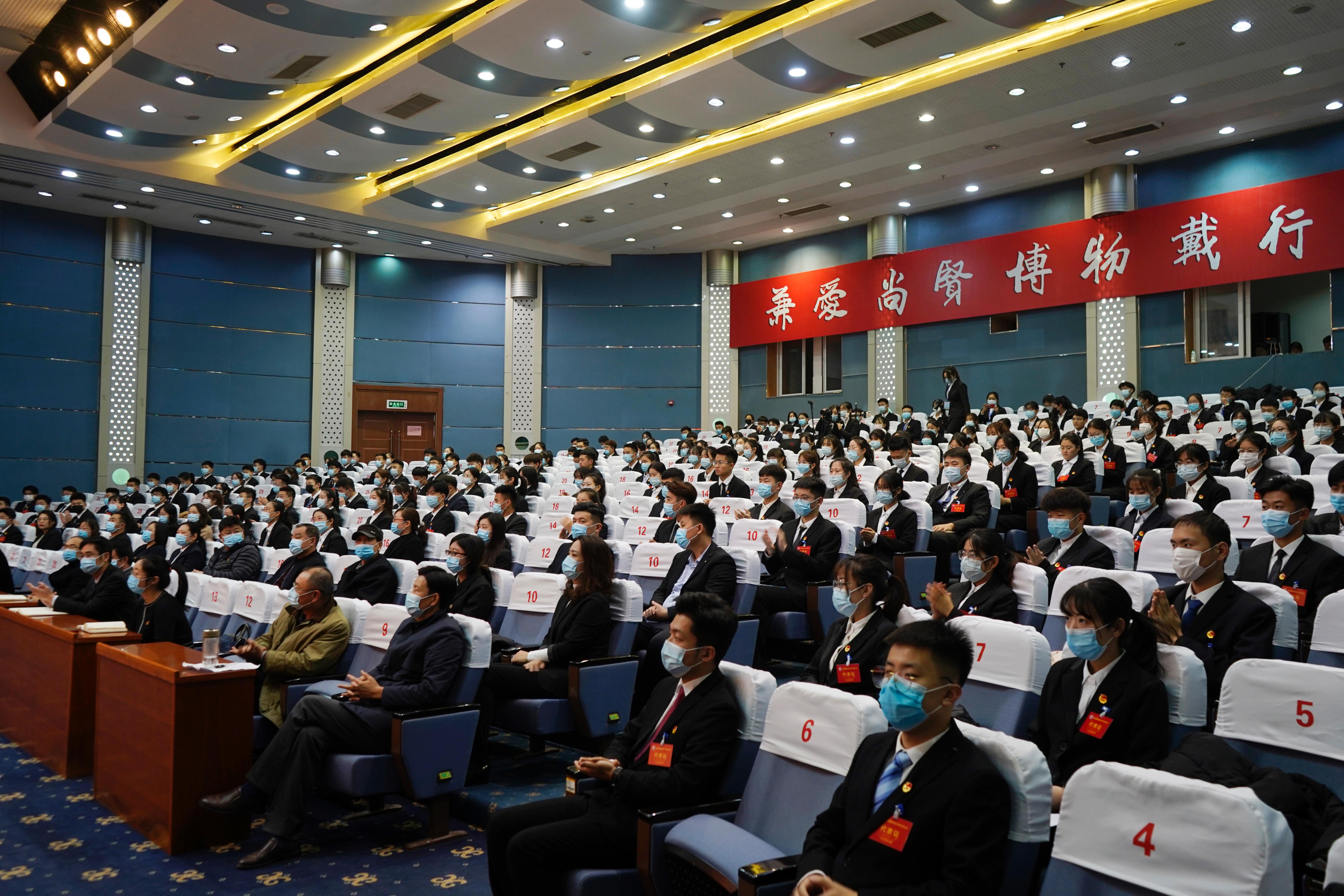第三届校学生会执行主席张震代表第三届学生会作了题为《坚定跟党走共筑中国梦 为建设国内知名的高水平应用型大学贡献青春力量》的工作报告。大会选举产生了第四届学生会主席团成员。按照疫情防控要求,大会在综合楼学术报告厅设立主会场,各二级学院设立分会场,并通过远程视频同步参会。