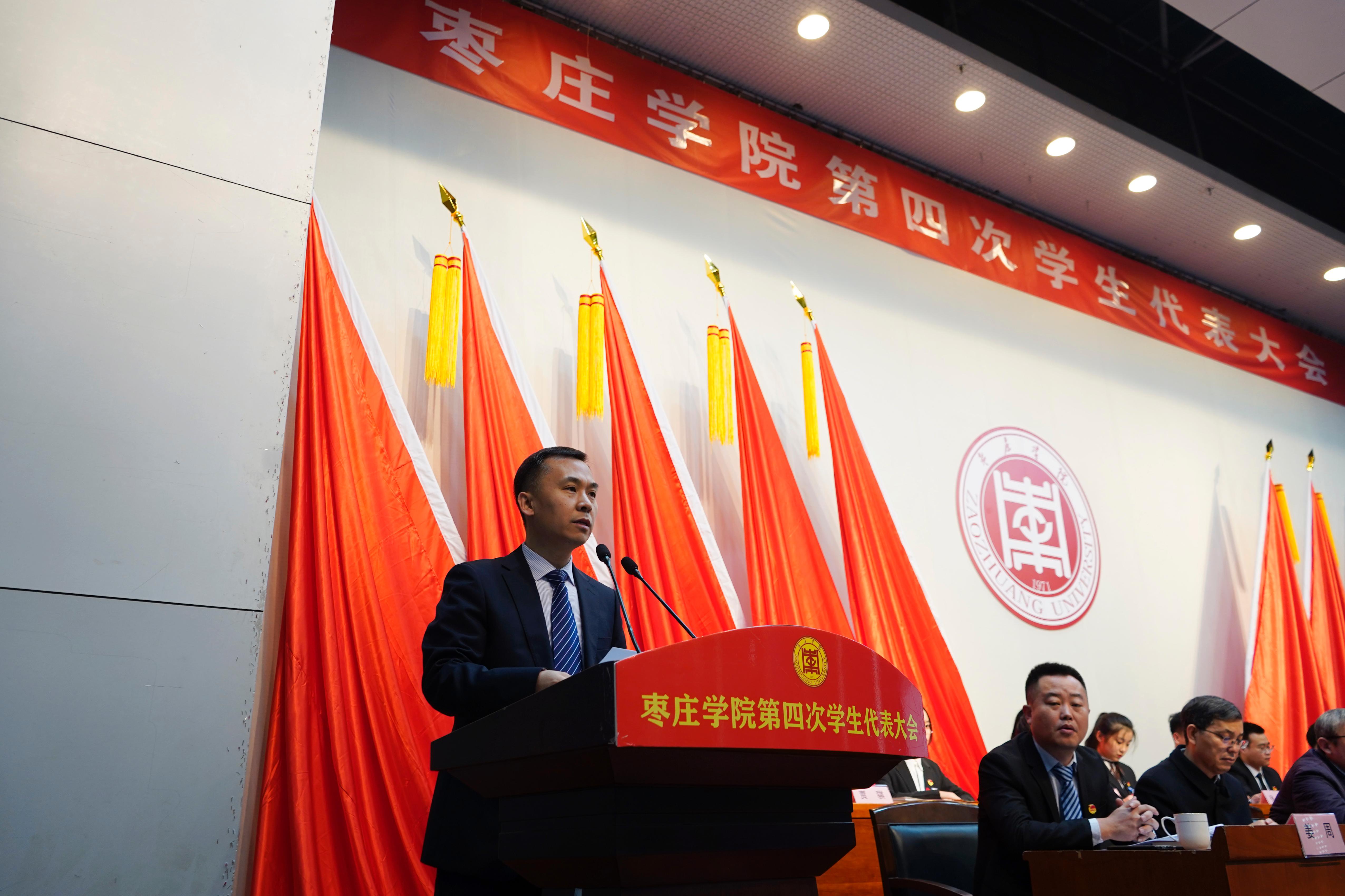 为贯彻落实全国青联十三届全委会、全国学联二十七大和学生会组织深化改革精神,团结带领全校青年学生把握时代主题,勇于自我革命,助推全面成长,在新时代新征程中挥洒青春、建功时代,12月5日,我校第四次学生代表大会顺利召开。校党委书记曹胜强,副书记曾宪明,党委委员、副校长明清河,党委委员、宣传部长张昌林,共青团枣庄市委副书记赵波出席会议,学校相关部门、二级学院党团负责人及200名学生代表参加大会。