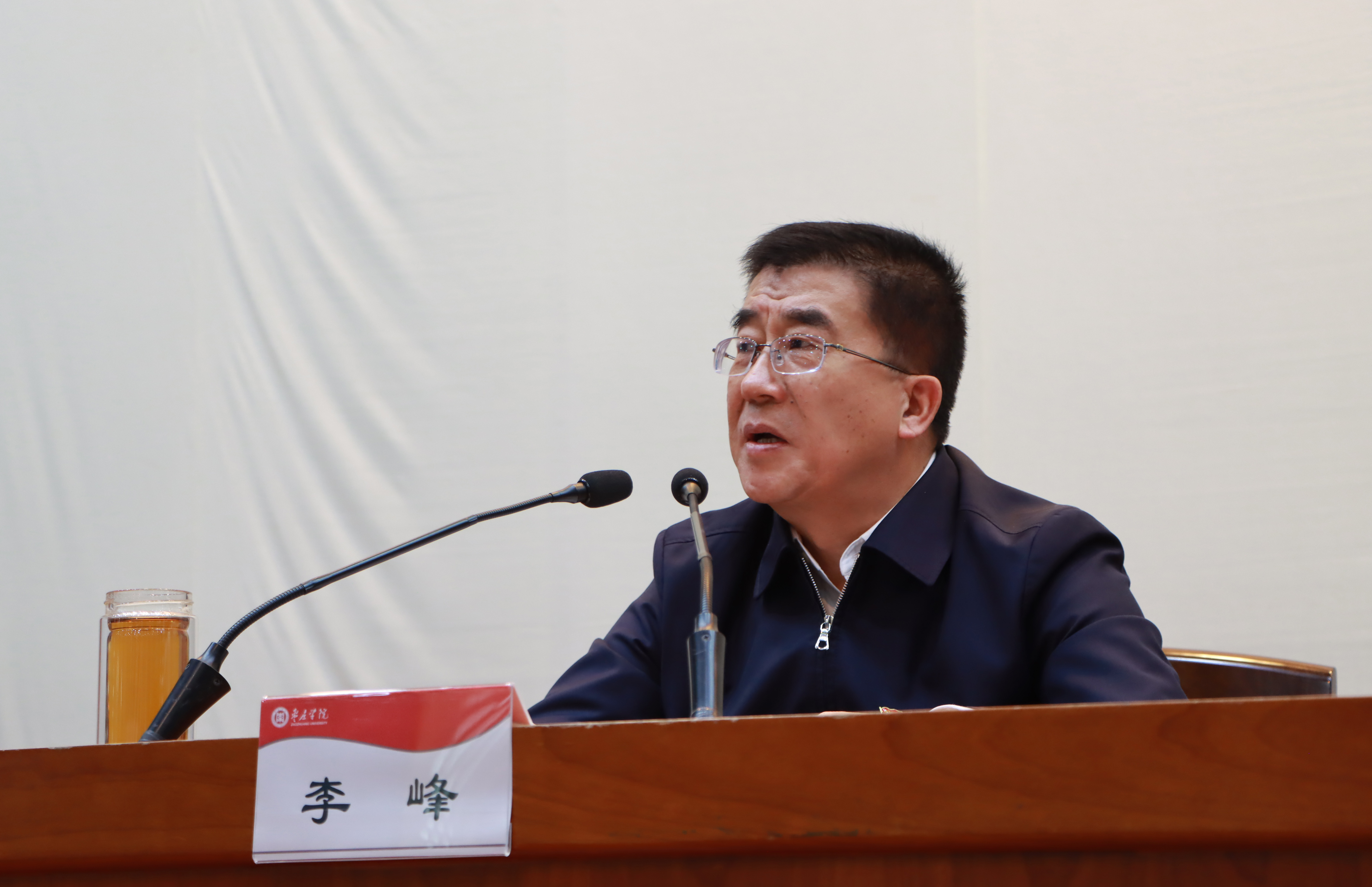 11月26日上午,枣庄市委书记、市人大常委会主任李峰莅临我校,以《深入学习贯彻党的十九届五中全会精神 奋力开创创新转型高质量发展新局面》为题,宣讲党的十九届五中全会精神并做形势与政策报告。校党委书记曹胜强主持报告会,校长李文喜,党委副书记曾宪明,党委委员、组织部部长孙正,党委委员、宣传部部长张昌林,市委办公室第一党支部全体党员,学校副处级以上干部、教学科研单位负责人、重点学科带头人及学生代表共200余人在综合楼学术报告厅聆听了报告。