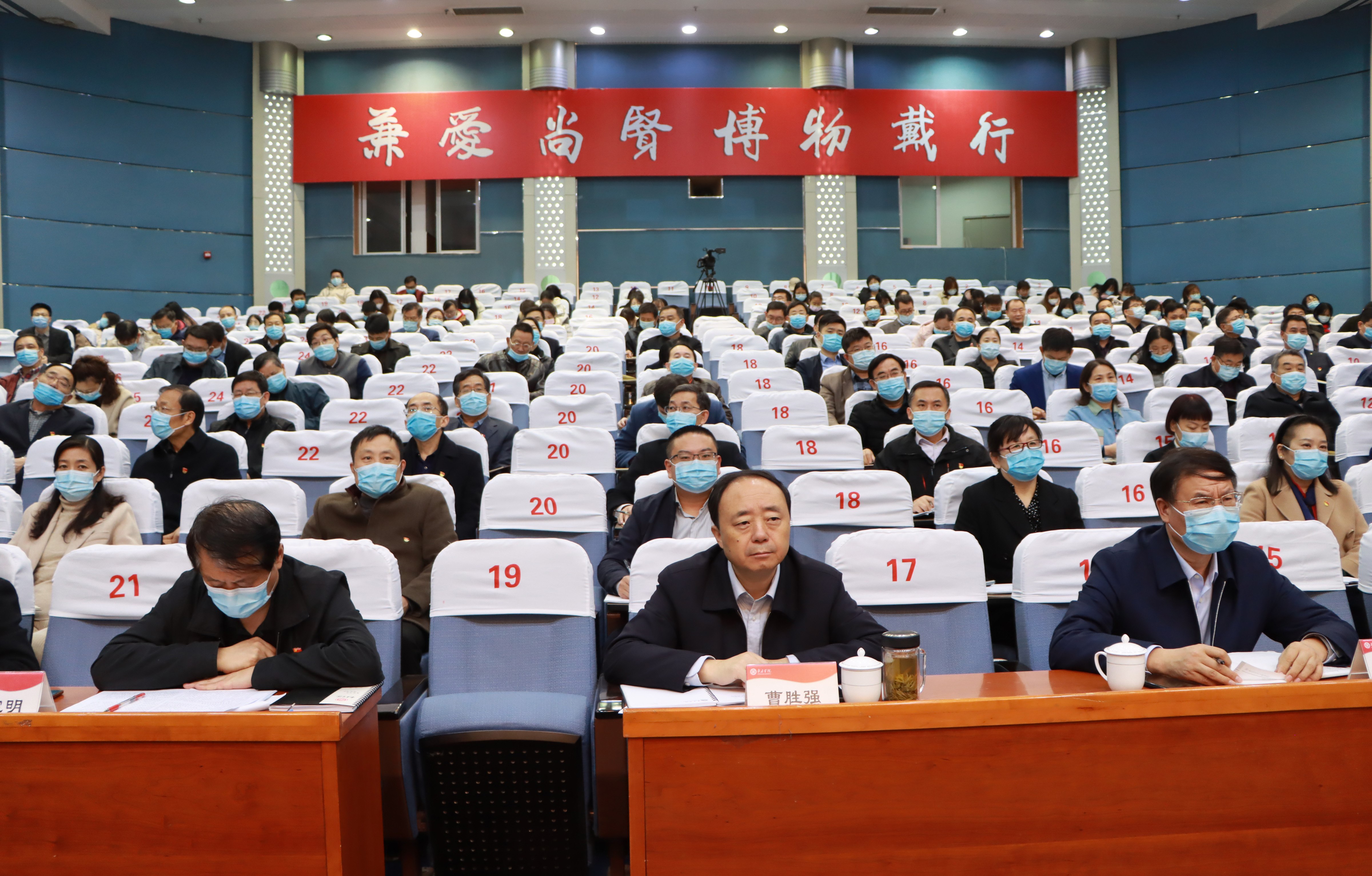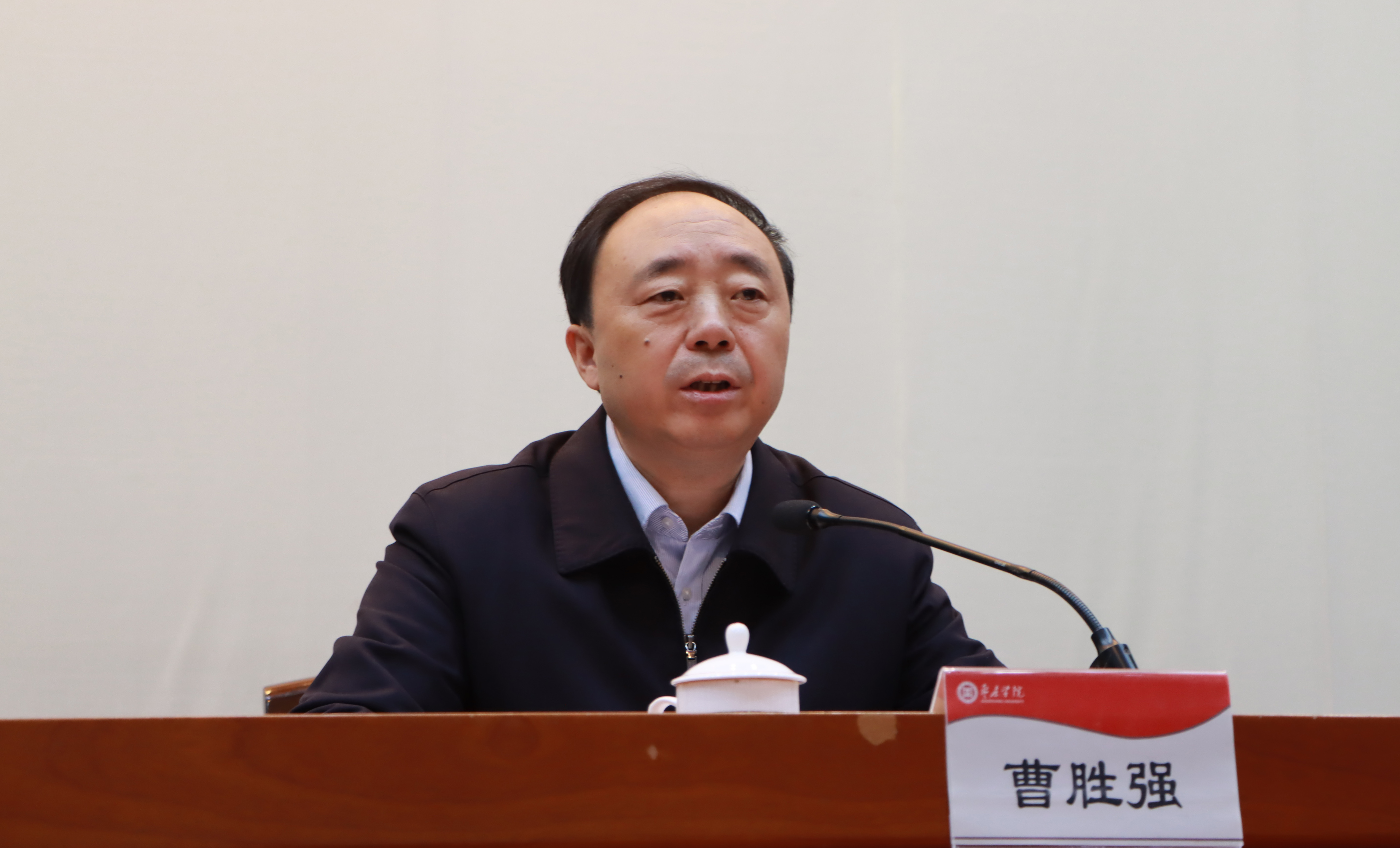 曹胜强代表学校对李书记的精彩报告表示衷心感谢。曹胜强指出,李书记的报告通篇贯彻了习近平新时代中国特色社会主义思想,体现了党的十九届五中全会精神,展示了枣庄“十四五”发展蓝图,政治站位高、思想深邃,求真务实、催人奋进。这次报告既是一次高水平的辅导促进,更是一次提升认识、启迪思维的动员号召,对于全校上下更加准确地理解和把握十九届五中全会提出的新思想、新论断、新要求,推动全会精神在我校落地落实具有非常强的现实意义。全校上下要深入学习、认真领会报告精神,把贯彻落实党的十九届五中全会精神与深入推进学校“十四五”事业发展规划编制工作结合起来,与建设高质量人才培养体系结合起来,与全面做好新冠肺炎疫情常态化防控工作结合起来,努力开创建设更高水平的应用型大学新局面,在建设现代化社会主义国家的新征程中贡献力量。