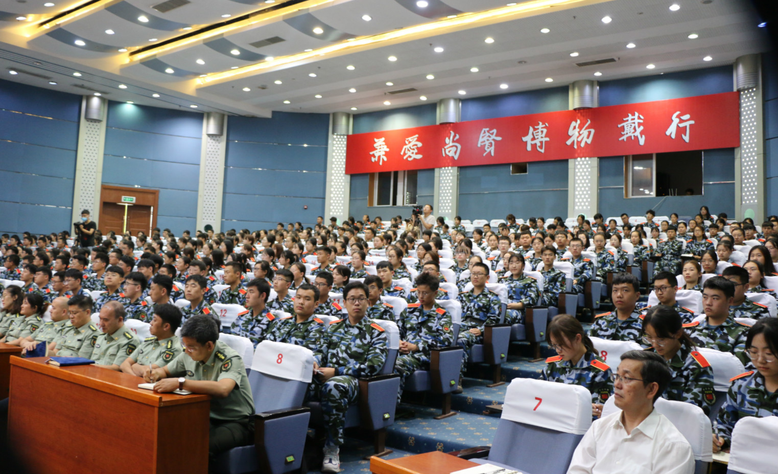 9月28日下午,校党委书记曹胜强教授在综合楼一楼学术报告厅为2020级大学新生讲授开学第一课——用责任和担当书写青春的精彩,2020级新生连队指导员及新生代表共400余人到场聆听。