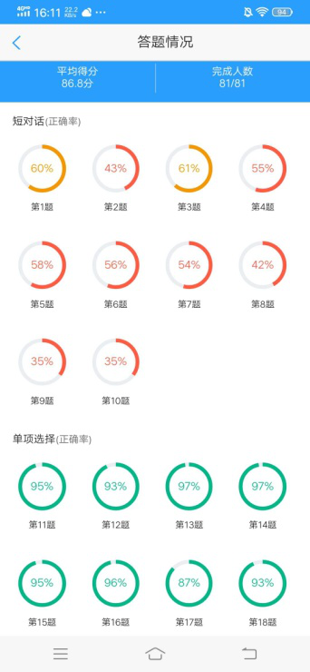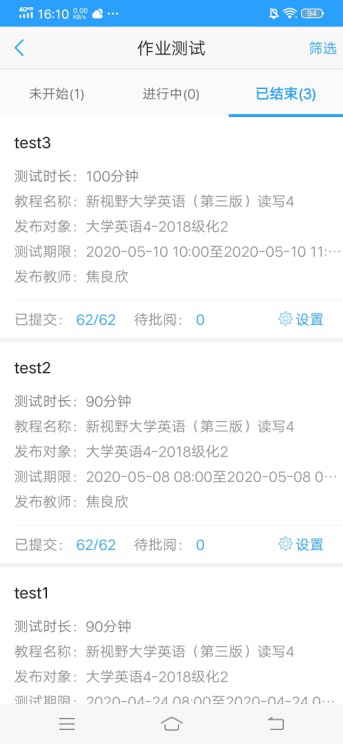 根据教学进度及学生学习情况适当增加测试,目前已测试三次,讲完教学计划所制定的单元后将进行第四次测试。测试形式主要是将每单元的知识点编辑成期末考试的题型发布到U校园平台,让学生进行测试。学生积极参与,效果良好。