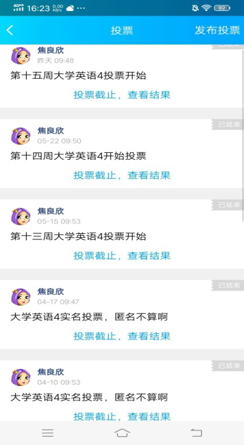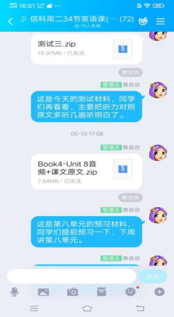 上课前一两天下发每周课程的预习内容。由于多数学生手头没有课本,所以老师将课文内容及译文以word 版,单词和课文读音以mp3的形式提前上传到班级群中,让学生做好预习。课前十分钟通过QQ投票的形式签到,课后将未参加投票或课堂提问没回应的学生记为缺勤。