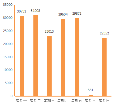 图5.6月1日-6月7日期间线上学习学生数(人次)分布图