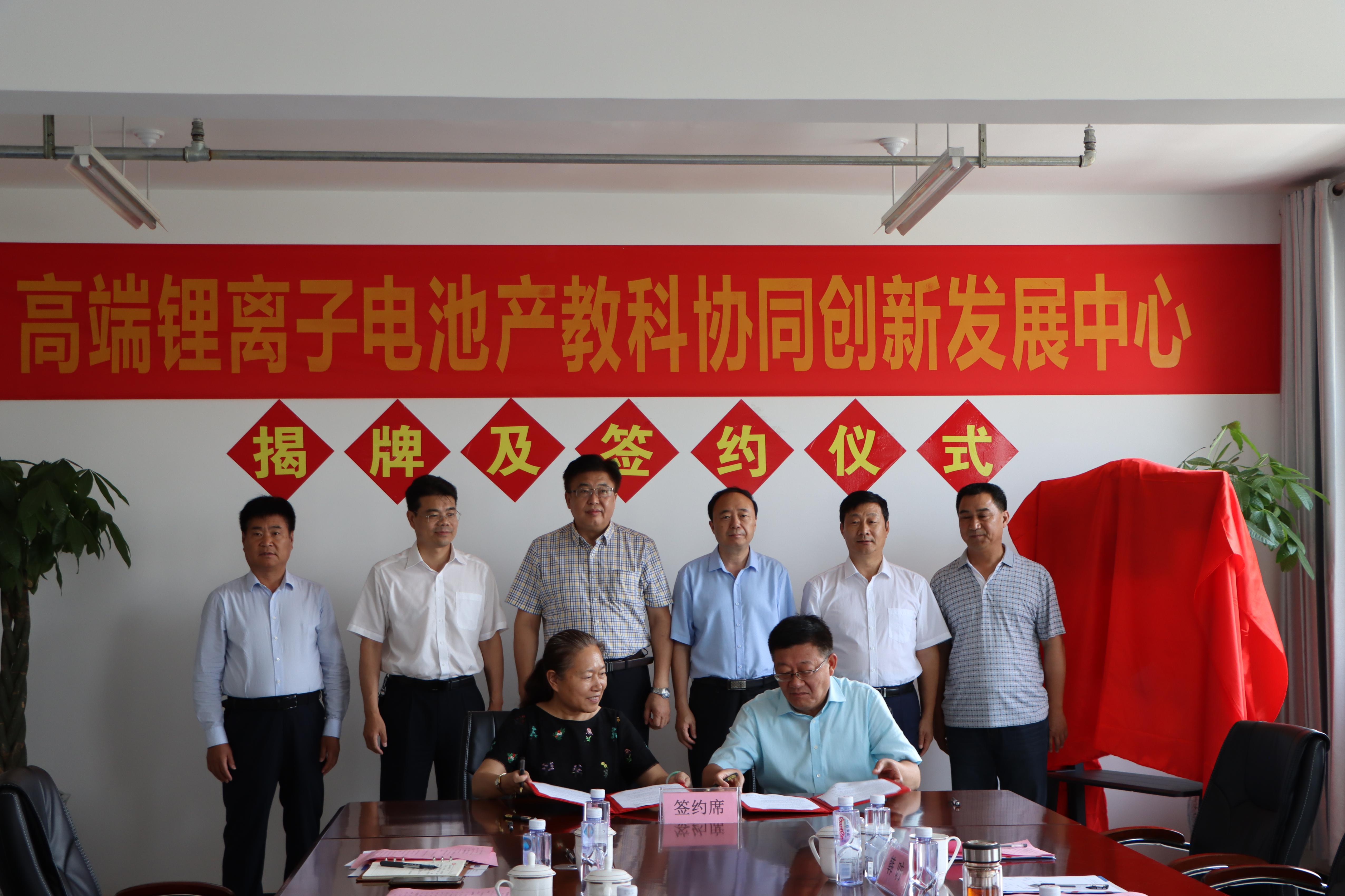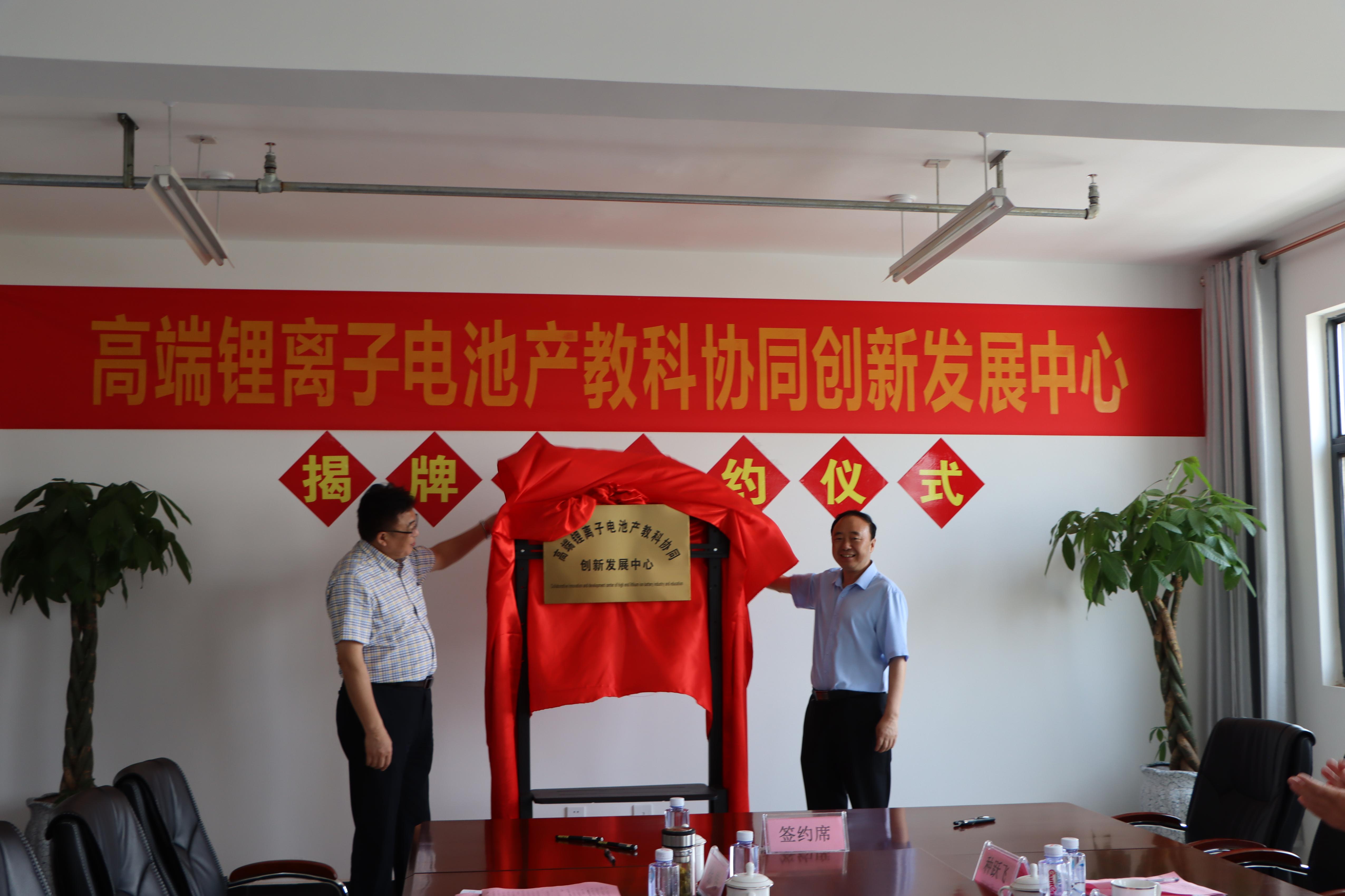 曹胜强与周宗安共同为香港全年最全免费资料大全-山东天瀚新能源科技有限公司“高端锂离子电池产教科协同创新发展中心”揭牌,李丽清代表我校与山东天瀚新能源科技有限公司总经理陈凡伟签署合作协议。