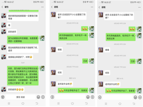 为了保证线上教学效果,提高教学效率,课堂上讲授的重点和难点,课后通过作业检验学习效果。陈老师通过多次实践选择小程序班级小管家,非常适合课程写-说-讲的要求,有利于学生学、练、用结合。教师发布不同形式的作业,学生可以拍照、录音、视频的方式上传,并能随时跟踪学生的作业完成情况。同时在微信班级群互动平台,及时发布课程相关信息,增进课程互动。教师全程在线答疑解惑,拓展课下教学空间,进一步巩固教学效果。