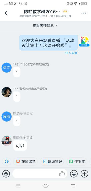 初等教育学院任课教师充分利用线上教学优势和课程资源,课前广泛搜集资料,认真备课;课上用心授课,频繁与学生交流;课下积极与学生沟通,获取学生的意见和建议,同时根据学生的作业情况,及时做出调整,以保证线上学习效果。本期我们将分享初等教育学院陈艳老师采用“雨课堂+微信群+钉钉直播+班级小管家”等方式开展在线教学的典型做法。