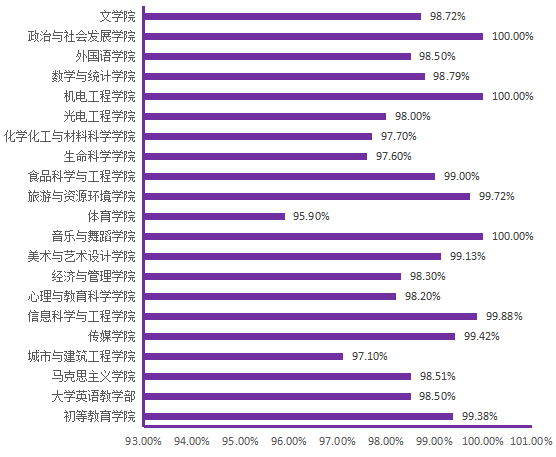 图6. 各院(部)5月28日线上学生上课率分布图
