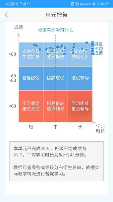 “U校园”的签到功能帮助教师在每堂课实现对学生出勤率的考察。与此同时,教师还可通过教师端随时查看学生的学习进度和学习时长,对没能按时完成任务的学生进行督促。