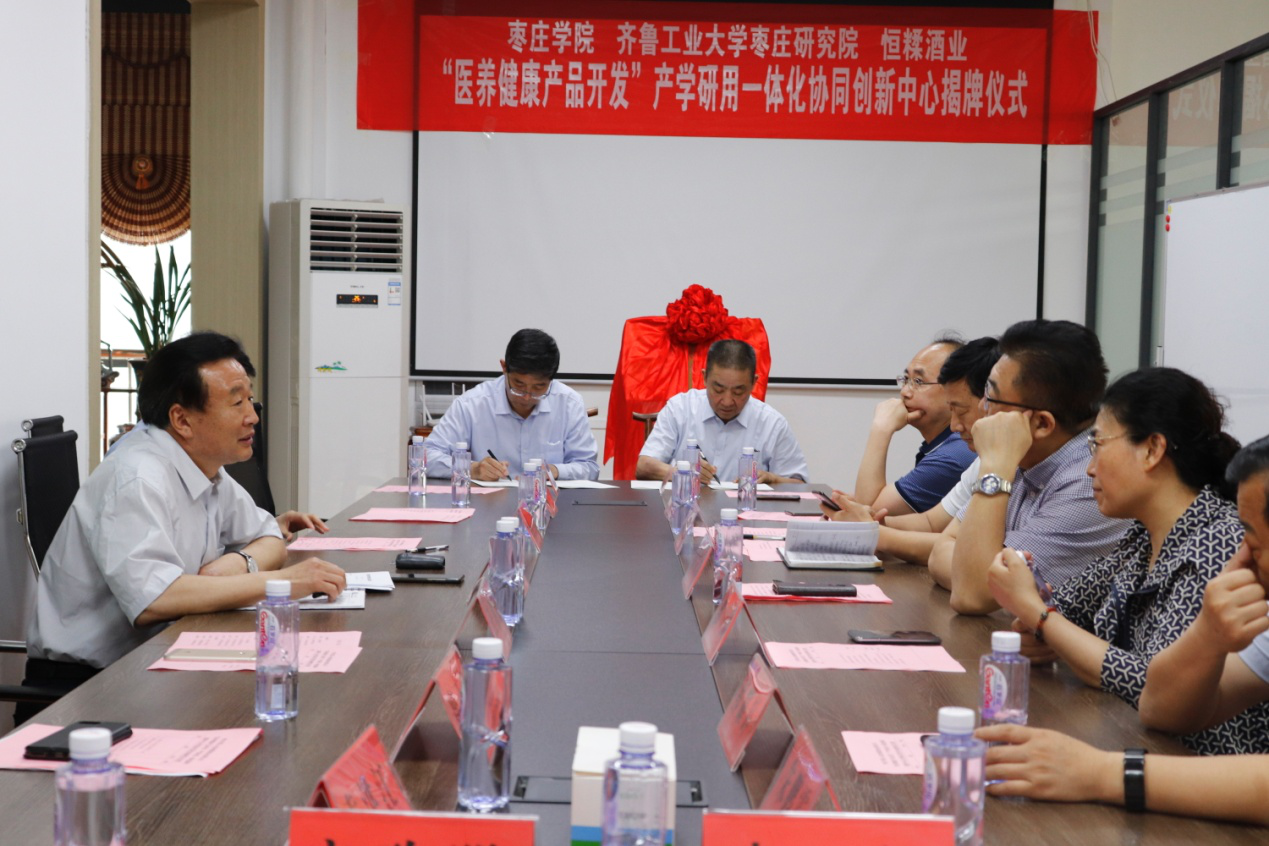 崔西成首先致辞,同时对企业的发展历程和主要运营项目进行了详细介绍。校长李东对学校产教融合办学成效,近年来人才引进、科研以及服务地方等工作取得的成果做了介绍。副市长周宗安对香港全年最全免费资料大全和山东恒糅酒业有限公司在产学研用合作方面取得的成效给予充分肯定和赞赏,并希望双方继续加强合作,争取更多科研成果的转化落地。最后,李东和周宗安共同为香港全年最全免费资料大全-山东恒糅酒业有限公司“医养健康产品开发”产学研用一体化协同创新中心揭牌并合影留念。