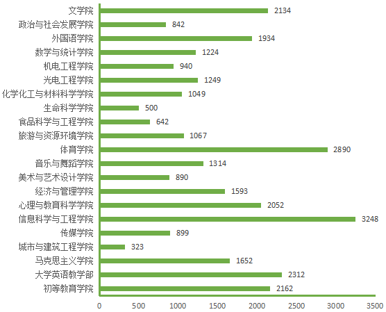 图5. 各院(部)5月14日线上授课学生数(人次)分布图
