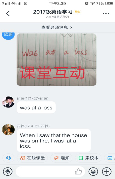 由于网络延迟的原因,线上的课堂互动环节与线下的面对面授课相比会占用更多的时间,这是必须把握的。学生参与课堂互动的积极性很高,客观题学生可以直接在在互动区输入答案,主观题学生可以拍照上传答案,也可连麦语音回答。对于学生的回答,及时给予鼓励和表扬,以保持学生的积极性。