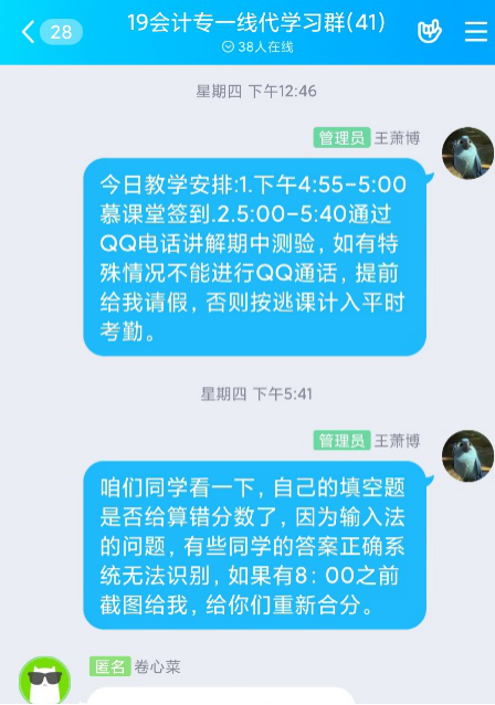 二、利用慕课堂和QQ电话,与学生进行沟通交流。