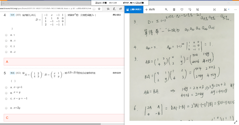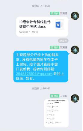 《线性代数》是代数的一个分支,是理工农医经管类学科的一门重要基础课程。学习这门课程能够帮助学生建立抽象思维和逻辑推理能力,为后续学科打下基础。经济与管理学院王萧博老师在讲授《线性代数》课程时,从解线性方程组出发,从而延伸出行列式、矩阵、线性方程组等章节,每一章节的教学都是从线上视频学习出发、然后学生做课后练习作业、最后进行课上随堂测验讲解,并通过线上测验检验学生的学习情况。线上教学主要通过“中国大学MOOC+QQ电话”的方式开展。