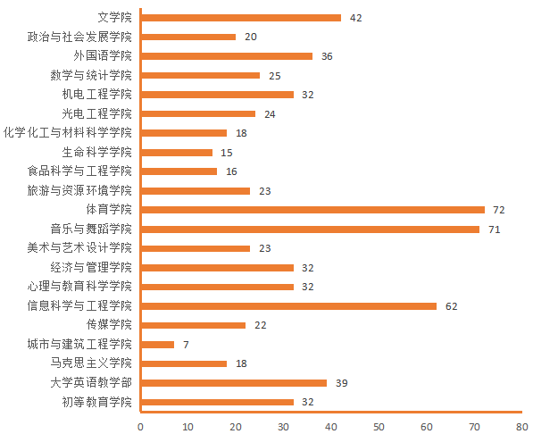 图4. 各院(部)4月23日线上授课教师数(人次)分布图