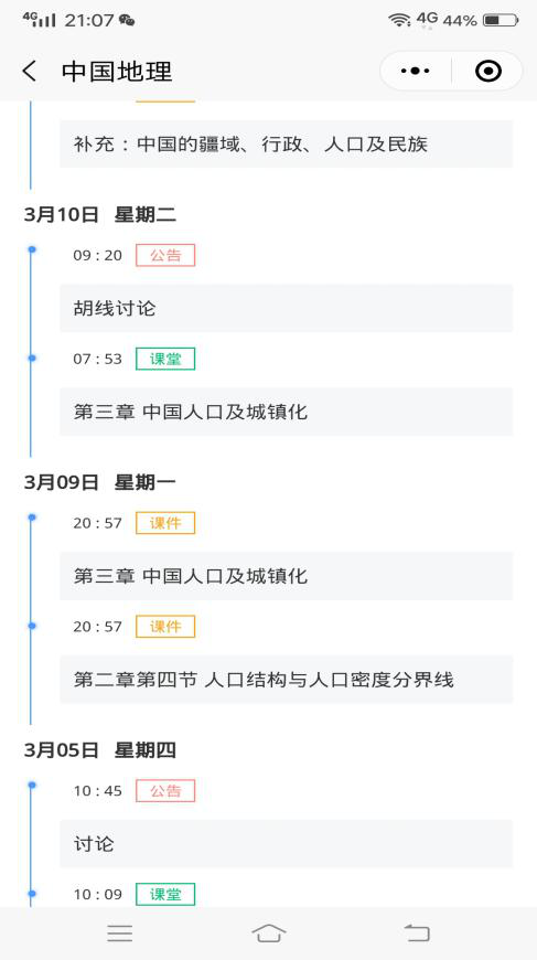 由于中国地理讲述内容与学生中学学习部分内容重复,因此采用“雨课堂+课程QQ群+爱课程”方式开展教学活动,让学生在巩固已知内容的基础上,对于课程的重点内容进行深入学习,同时补充相关研究现状,鼓励学生依据所学及自身周边的情况,分享自己的观点。从学生的反馈来看,目前的教学方式方法学生比较喜欢。