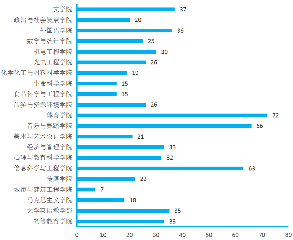 图4.各院(部)4月16日线上授课教师数(人次)分布图