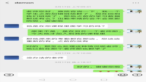 3、在课后做好学生学习的服务者。针对学生在日常自学或完成作业的过程中遇到的难以理解的问题提供全天候在线辅导,保持微信、电话随时在线,及时为学生解疑答惑,并针对慕课堂后台数据反馈出的在学习过程中存在某方面问题的学生进行一对一交流,切实做到全过程育人。
