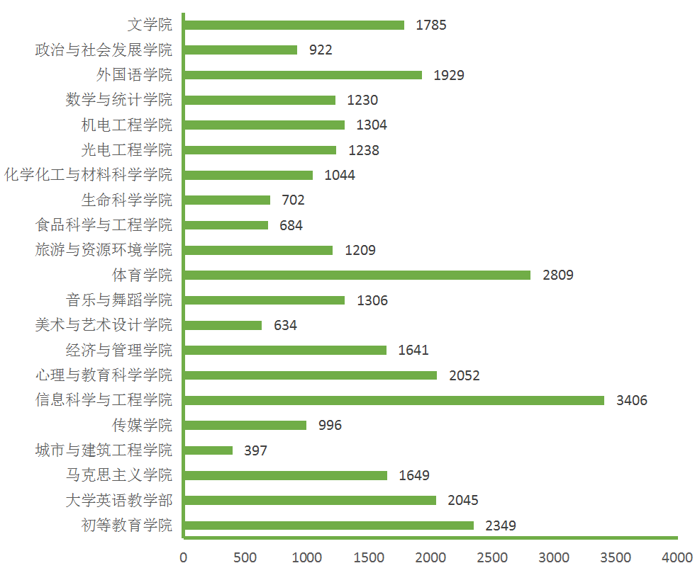 图5. 各院(部)4月16日线上授课学生数(人次)分布图
