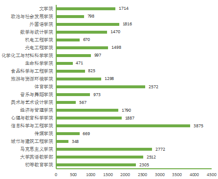 图5. 各院(部)4月13日线上授课学生数(人次)分布图