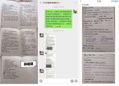 线下教学辅助网络教学:线上教学的同时,要求学生线下做好课堂学习笔记,布置课后作业。学生们当天完成,拍照提交作业,督促学生线下学习。