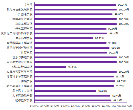 各院(部)的开课数、开课门次、班级数、教师数(人次)、学生数(人次)和学生上课率情况如下图所示: