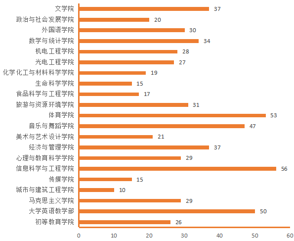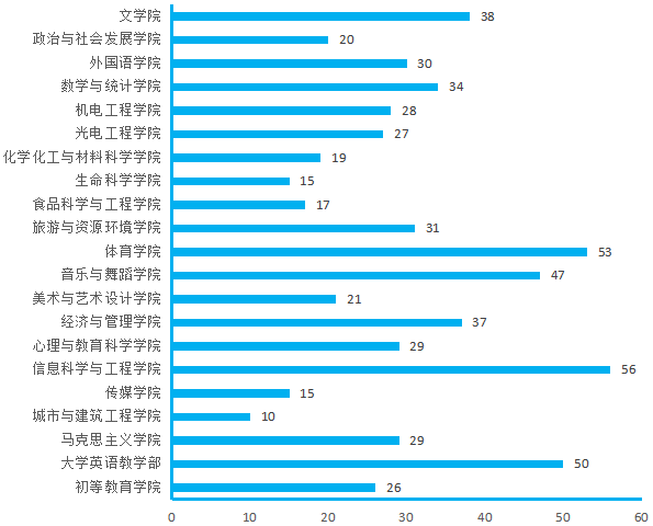 图4.各院(部)4月14日线上授课教师数(人次)分布图