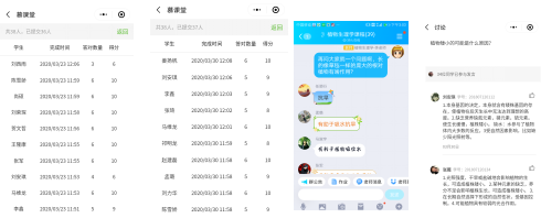 《植物生理学》课堂分四步进行。第一步是通过慕课堂提前5分钟开始学生签到,督促学生按时认真学习;第二步是学生通过慕课平台学习本课内容(30-40分钟)。课间10分钟,学生可以在课间通过QQ提问;第三步是QQ直播(讲受40-50分钟)。直播着重讲解重点和难点内容,同时补充慕课未侧重内容,力求前后知识点的融会贯通。在直播过程随机提问,考察学生课堂跟进情况;第四步是随堂测验与讨论(10分钟)。以往不愿意露脸的同学,在课堂有了更多发言的欲望,线上课堂气氛积极、活跃。对于没有及时签到或未提交测验的同学,李老师在课下通过QQ方式及时联系询问来确认具体缘由,避免因为网络问题或系统问题引起的差错,从而保证不轻易落下一个学生。
