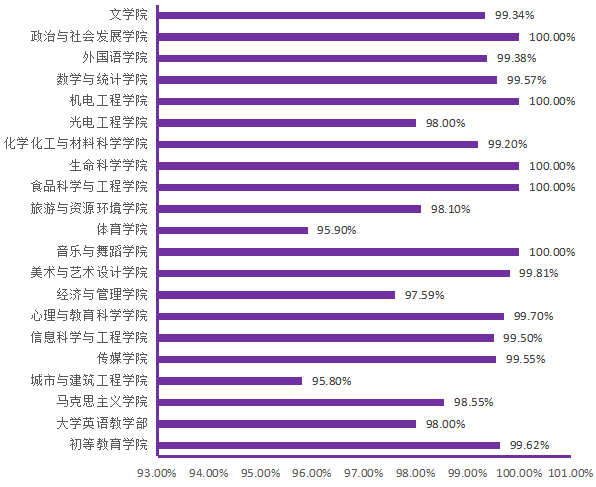 图6. 各院(部)4月14日线上学生上课率分布图