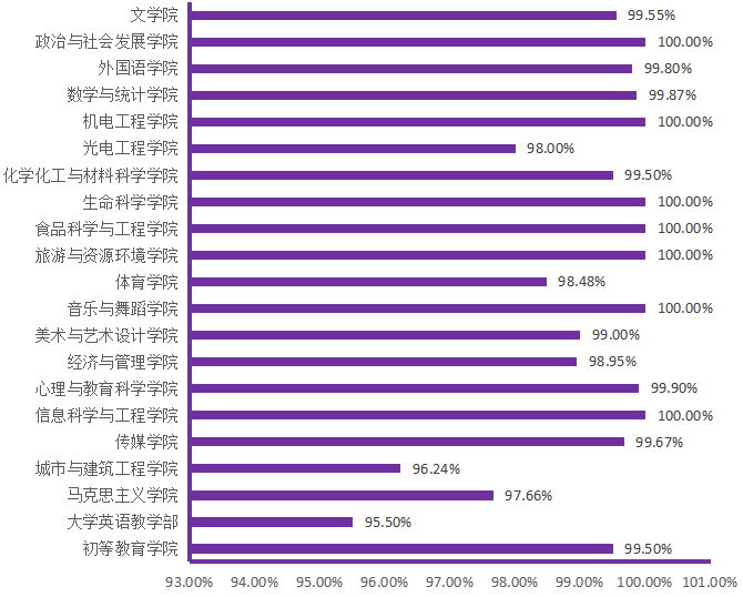 图6. 各院(部)3月18日线上学生上课率分布图